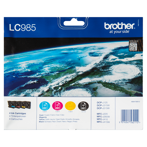 Sørg for, at udskiftningen af dine originale Brother blækpatroner er så problemfri og overkommelig som muligt ved at købe denne LC985VALBP sampak. Pakken indeholder sort, cyan, gul og magenta LC985 patroner, der alle er designet til at gøre det nemmere for dig at få det bedste ud af din Brother-printer.