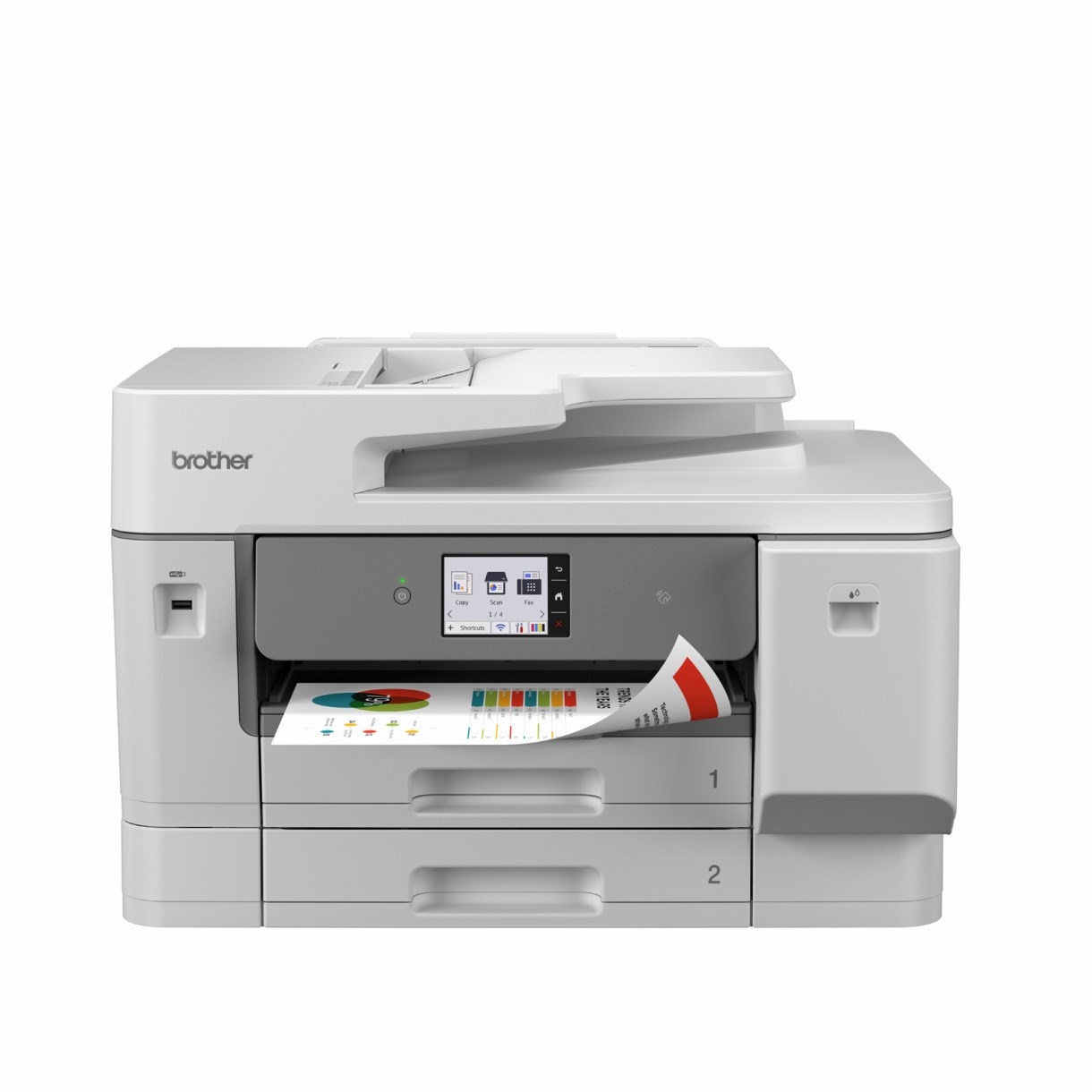 Leverer ultrahurtige printhastigheder og enestående printkvalitet med avancerede scannefunktioner. MFC-J6975DW er udviklet til miljøer med høje krav og har papirskuffer med stor kapacitet, der understøtter en lang række mediebehov. Med stærk sikkerhed og nem integration til mange løsninger er denne printer et sikkert valg til det travle kontor.